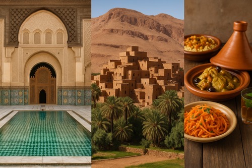 모로코는 북아프리카에 위치한 나라로, 대서양과 지중해를 동시에 마주하고 있으며 사하라 사막과 아틀라스 산맥을 품은 독특한 지리적 환경을 가지고 있습니다. 이 지리적 특성은 수천 년 동안 다양한 민족과 문화가 교차하고 융합되는 배경이 되었고, 오늘날 모로코는 아랍, 베르베르, 유럽의 영향을 동시에 느낄 수 있는 독특한 문화를 형성하게 되었습니다.
