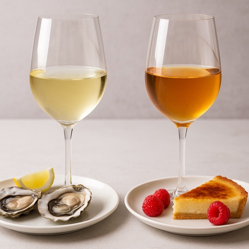 • 음식과의 조화를 생각한다면 → 드라이는 가벼운 음식, 스위트는 강하거나 매운 음식과 찰떡궁합