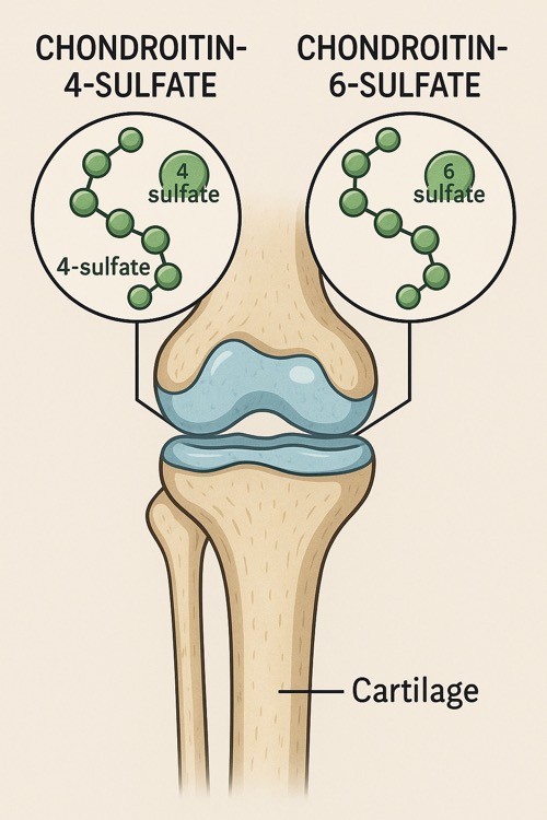 콘드로이친은 관절과 연골 건강에 중요한 성분으로, 그중 4형은 관절 쿠션, 6형은 항염과 조직 보호에 주로 관여합니다. 따라서 두 가지를 균형 있게 섭취하는 것이 이상적이며, 관절 건강 관리에 도움이 될 수 있습니다.