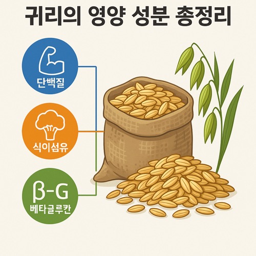 귀리는 ‘슈퍼푸드’라는 이름이 아깝지 않은 곡물입니다. 전 세계적으로 건강식의 대명사로 자리 잡은 이유는 단순히 포만감을 주는 곡물이 아니라, 우리 몸에 꼭 필요한 다양한 영양소를 풍부하게 함유하고 있기 때문입니다. 특히 단백질, 식이섬유, 그리고 귀리만의 대표 성분인 베타글루칸은 귀리를 특별하게 만들어주는 핵심 요소입니다.