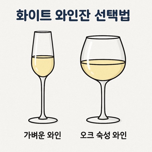 화이트 와인은 레드 와인과 달리 산뜻하고 신선한 향을 살려 마시는 경우가 많습니다. 하지만 같은 화이트 와인이라도 가벼운 스타일과 오크 숙성 와인은 풍미와 구조가 크게 달라, 그에 맞는 잔을 선택하는 것이 중요합니다. 올바른 잔을 사용하면 와인의 매력을 훨씬 더 풍부하게 느낄 수 있지요.