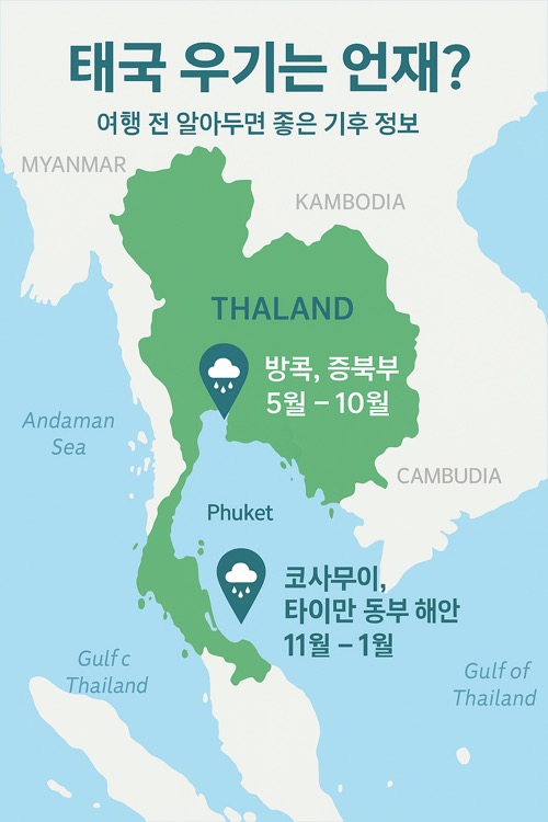 👉 즉, 태국 우기는 지역에 따라 다르므로 여행 계획 시 목적지를 고려해야 합니다.