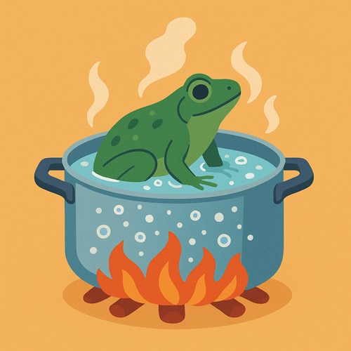 이 표현은 “개구리를 차가운 물에 넣고 서서히 끓이면 개구리가 위험을 감지하지 못해 결국 삶겨 죽는다”는 비유에서 비롯되었습니다.