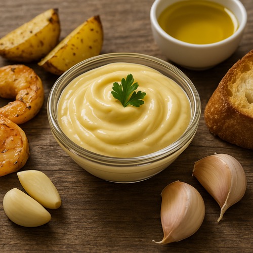 아이올리 소스(Aïoli)는 올리브오일과 마늘을 기본으로 한 지중해 대표 소스로, 스페인과 프랑스 남부, 특히 카탈루냐와 프로방스 지역에서 오랜 전통을 이어오고 있습니다. 단순하지만 강렬한 맛 덕분에 현지 음식 문화에서 중요한 자리를 차지하고 있죠.