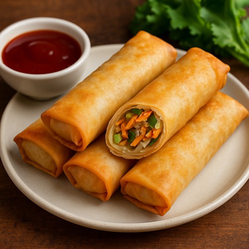 고기와 채소를 듬뿍 넣고 바삭하게 튀긴 춘권으로, 잔치와 모임에서 자주 등장하는 인기 메뉴입니다.