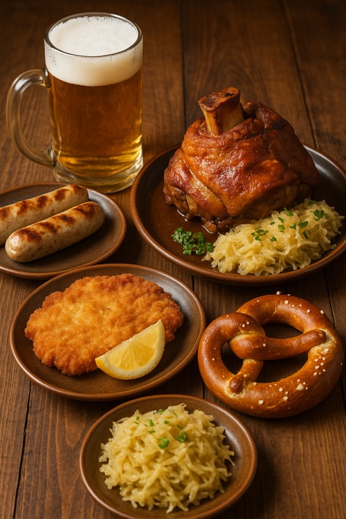 독일을 여행하다 보면 맥주잔 옆에 항상 따라오는 것이 있습니다. 노릇하게 구운 소시지, 짭조름한 프레첼, 바삭한 슈니첼— 이들은 단순한 안주가 아니라 독일 맥주 문화의 일부입니다.