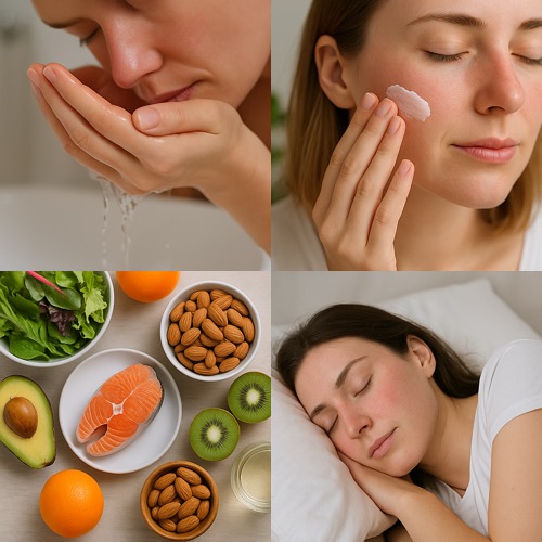 피부는 밤에 재생됩니다. 수면 중 체온이 자연스럽게 낮아지며 혈관이 안정되기 때문에, 숙면은 곧 홍조 완화의 시작점입니다. 실내 온도는 20℃ 전후, 습도는 40~60% 정도로 유지하고, 수면 전 스마트폰 사용을 줄이는 것이 좋습니다. 또한 수면 중 얼굴이 베개에 닿지 않도록 높이가 적당한 베개를 사용하면 열이 한쪽으로 몰리는 것을 방지할 수 있습니다.