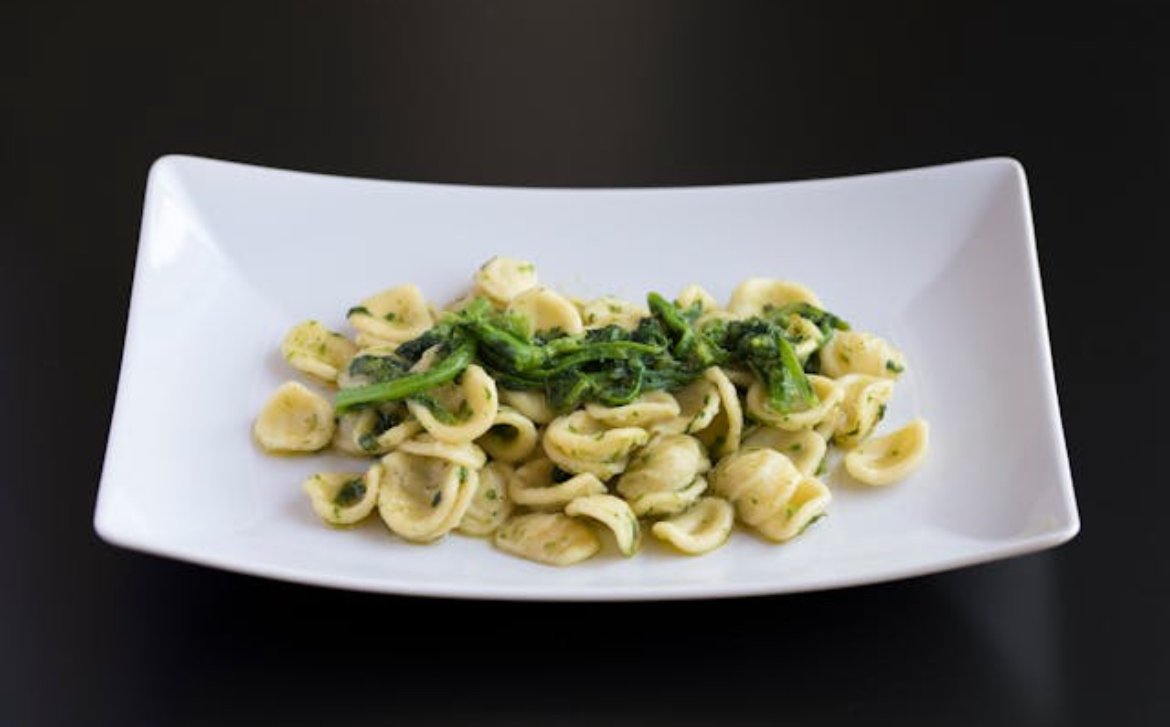 이탈리아 푸글리아 지역에서 가장 유명한 오레끼에떼 요리입니다. Cime di rapa는 이탈리아 특산 채소로, 한국의 쌉쌀한 배추와 비슷한 맛을 가지고 있습니다. 이 요리는 올리브 오일, 마늘, 고추, 그리고 안초비와 함께 쓴맛이 나는 채소를 볶아 오레끼에떼와 함께 버무려 먹는 것이 특징입니다. 간단하면서도 깊은 맛을 자랑하는 요리입니다.