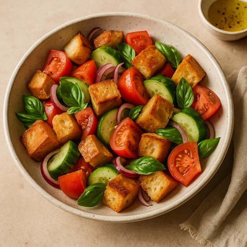 여름날, 더운 주방에서 오븐을 켜지 않고도 완벽한 한 끼를 만들 수 있다면 얼마나 좋을까요? 판차넬라(Panzanella)는 그런 여름의 바람을 닮은 이탈리아의 대표적인 ‘빵 샐러드’입니다. 특히 토스카나(Toscana)와 움브리아(Umbria) 지방에서 사랑받는 이 요리는, 남은 빵을 활용해 신선한 채소와 올리브오일, 식초를 더해 완성되는 절약과 풍미의 상징입니다.