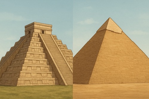 고대 문명의 상징이라 할 수 있는 ‘피라미드’. 하지만 우리가 흔히 떠올리는 이집트의 기자 피라미드 외에도, 지구 반대편 중남미의 마야 문명 역시 거대한 피라미드를 남겼습니다. “둘 다 피라미드라 부르지만, 같은 건축물일까?”