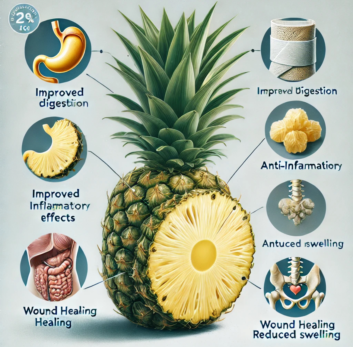 브로멜라인은 항염 작용을 통해 염증을 완화하는 데 효과적입니다. 연구에 따르면, 브로멜라인은 신체의 염증을 줄이고 부종을 완화하는 데 도움을 줄 수 있습니다. 특히 관절염 환자들에게 이 효소가 염증과 통증을 줄이는 데 유익할 수 있다는 연구 결과가 있습니다.