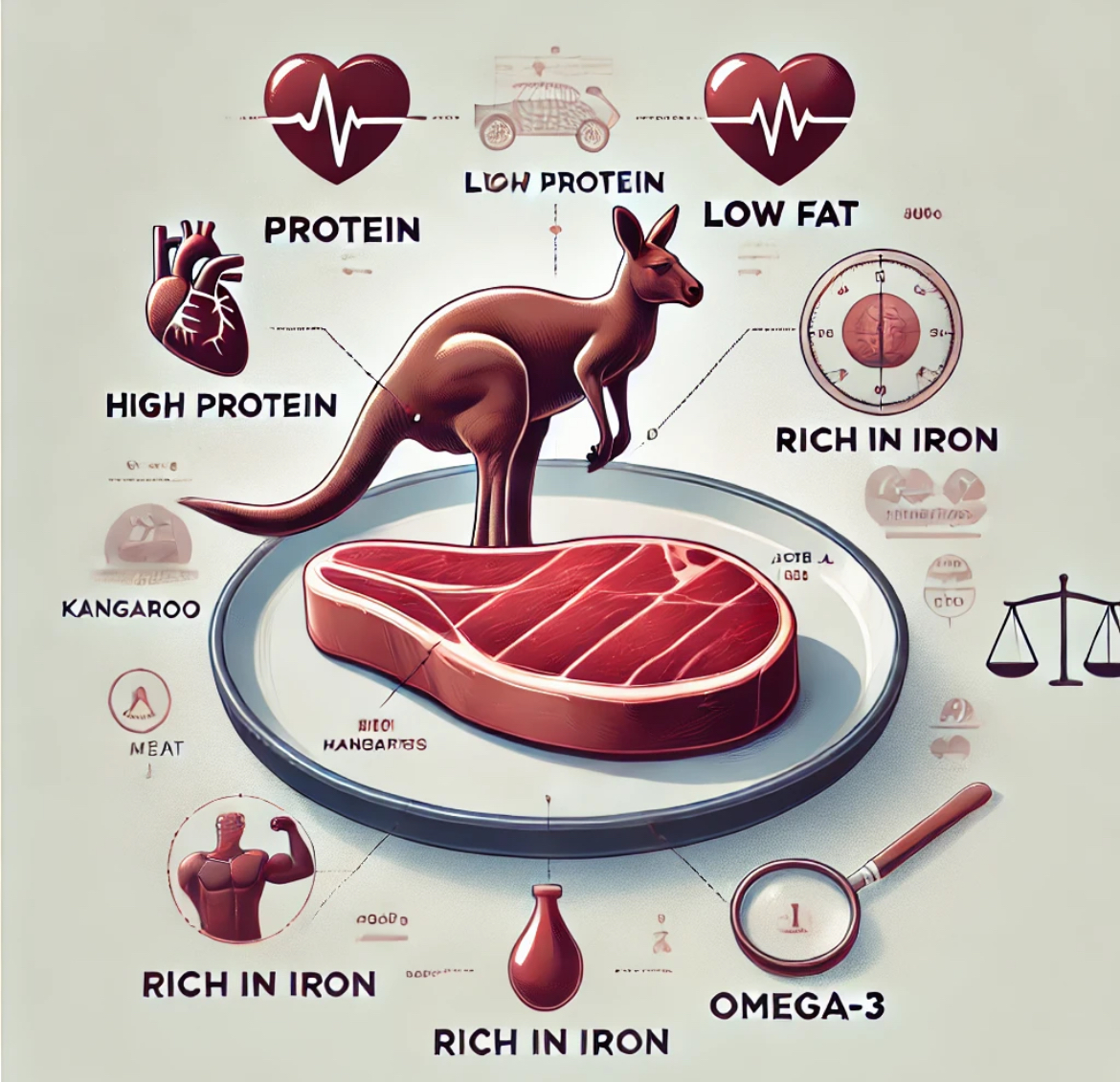 캥거루 고기는 저지방, 고단백, 철분 및 오메가-3 지방산이 풍부한 건강한 육류로, 다이어트와 심혈관 건강, 빈혈 예방 등에 도움을 줄 수 있습니다. 또한, 환경을 생각하는 지속 가능한 식품으로서 그 가치는 더욱 높아지고 있습니다.