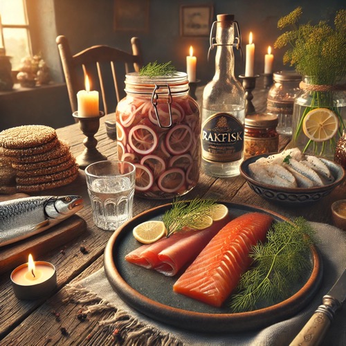 노르웨이에서는 과거에 냉장 기술이 없던 시절, 풍부하게 잡히는 청어, 연어, 대구 등을 오랫동안 저장하고 소비하기 위한 방법이 절실했습니다. 그 해결책으로 사용된 것이 바로 소금, 설탕, 식초 등의 조합으로 생선을 절이는 방식입니다.
