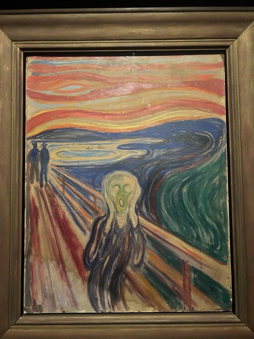 이 구절은 바로 〈절규〉의 심상과 배경이 탄생한 순간이기도 합니다. 에케베르그 언덕에서 해질녘 붉게 물든 하늘과 피요르드를 내려다보며 느낀 감정, 그리고 극도의 불안과 고독이 이 작품에 그대로 담겨 있는 것입니다.