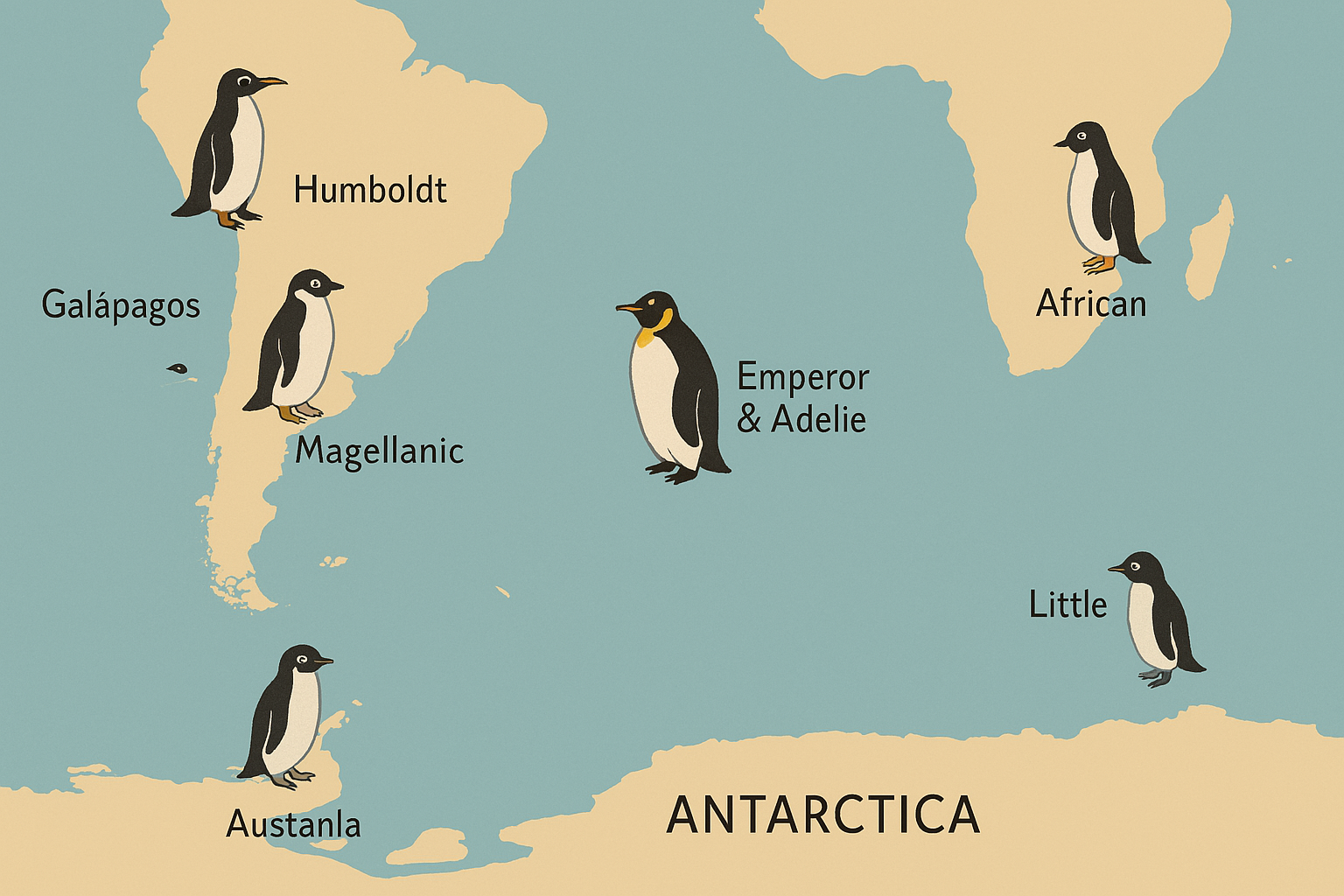 많은 사람들이 펭귄 하면 하얀 눈밭, 얼음 위를 뒤뚱뒤뚱 걷는 모습을 떠올립니다. 하지만 사실, 전 세계의 펭귄 중 대부분은 ‘남극 이외의 지역’에 살고 있다는 사실, 알고 계셨나요? 이번 글에서는 우리가 잘 몰랐던 펭귄의 다양한 서식지를 소개하고, 남극 바깥에서 살아가는 펭귄들의 매력적인 이야기를 전해드립니다.