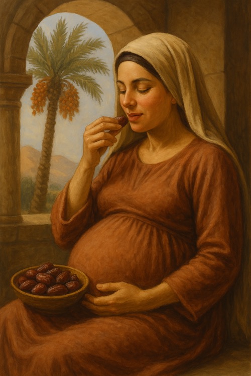 이 장면은 대추야자가 에너지원일 뿐 아니라 산모의 몸에 이로운 자연식품임을 상징적으로 보여주는 구절입니다.